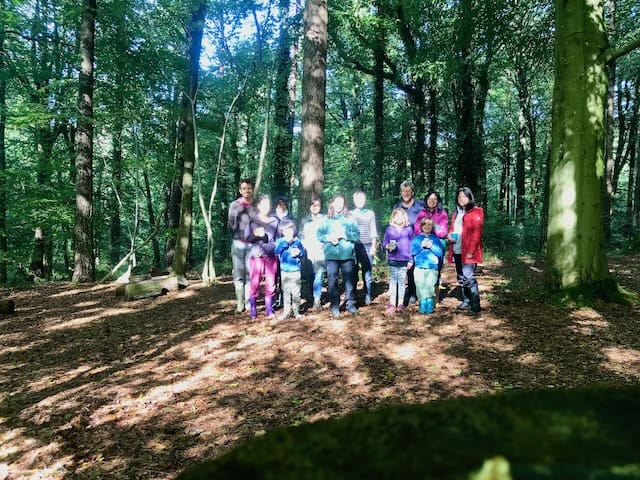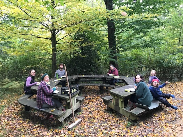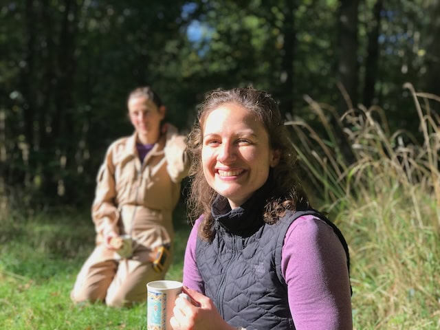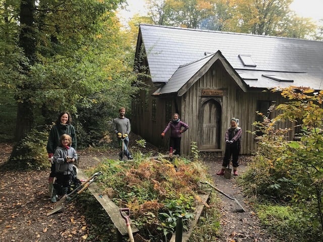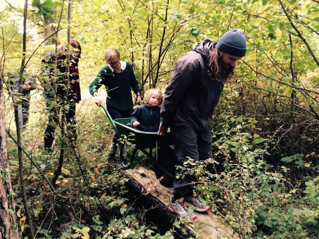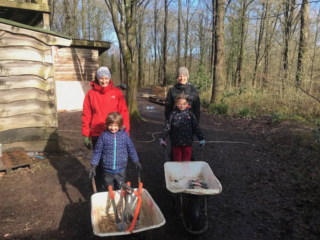 Tea break in the wood, saving time walking back and forth to the Oak House. and little kids allowed, a new thing for Hazel Hill.