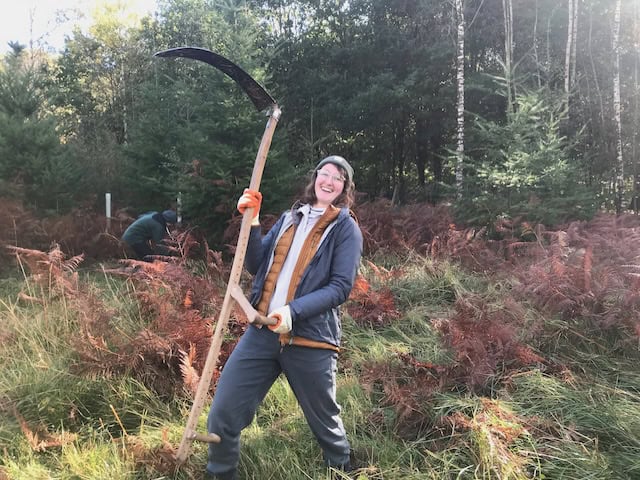 And yet somehow by the autumn, the lockdown had lifted and we were back. Note how far apart we are all standing. Also lots of evidence here of scything, introduced by Charley joined the team in 2018 and now a main-stay of our conservation methods.