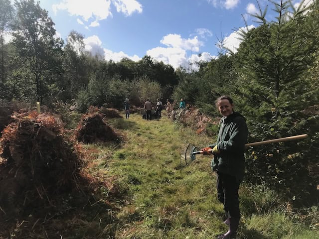 In 2019 we were busy with looking after the North-West Frontier area. We had replaced a diseased plantation of Corsican Pine with Douglas Fir. The work in spring and autumn was to clear the brush from around these saplings to give them a head start. By 2019 I had become a trustee, and so I was back involved again.