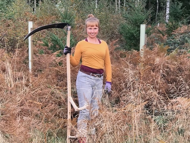 In those days the conservation weekends were led by Alan Heeks, our founder at Hazel Hill. That weekend he had brought in the charity Butterfly Conservation to train people on small tree felling. The idea was to create butterfly rides — openings in the woodland that enable butterflies to cross the site in full sun. Our forestry plan at that time was prioritising removing sycamore from the site, which is what Mary and I got stuck into. The first time I had felled a tree. We also planted a willow hedge around a circle of grass, with the idea that it would take and form a circular arbour.