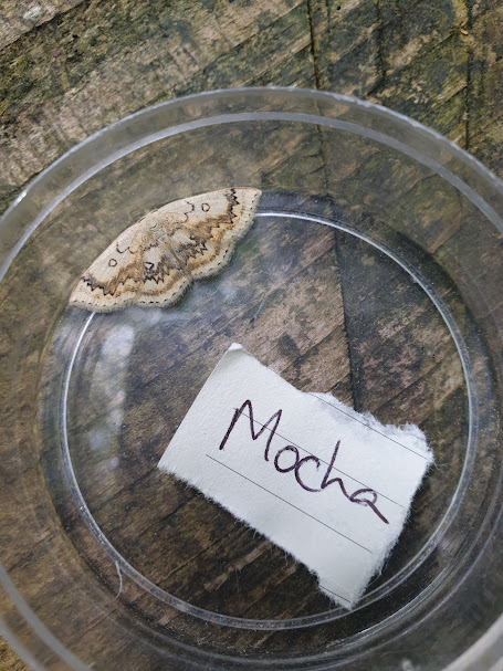 Tamsin* is very shy and usually speaks quickly and quietly if at all. In the group, she tends to keep to herself. She is very keen on wildlife, and we see a different person in her at Hazel Hill Wood, particularly during wildlife-focused activities. Tamsin was putting her hand up and answering questions about bats with the whole group, which she doesn’t usually do. When Tamsin gets the chance to speak about things she’s interested in, like wildlife, she slows down, speaks up and chooses to interact with other people, including young people. Tamsin and Leo* stayed on to keep chatting to the moth survey volunteers and see more moths when everyone else had gone back for cake and custard. It is heartwarming to see Tamsin flourish in this environment.